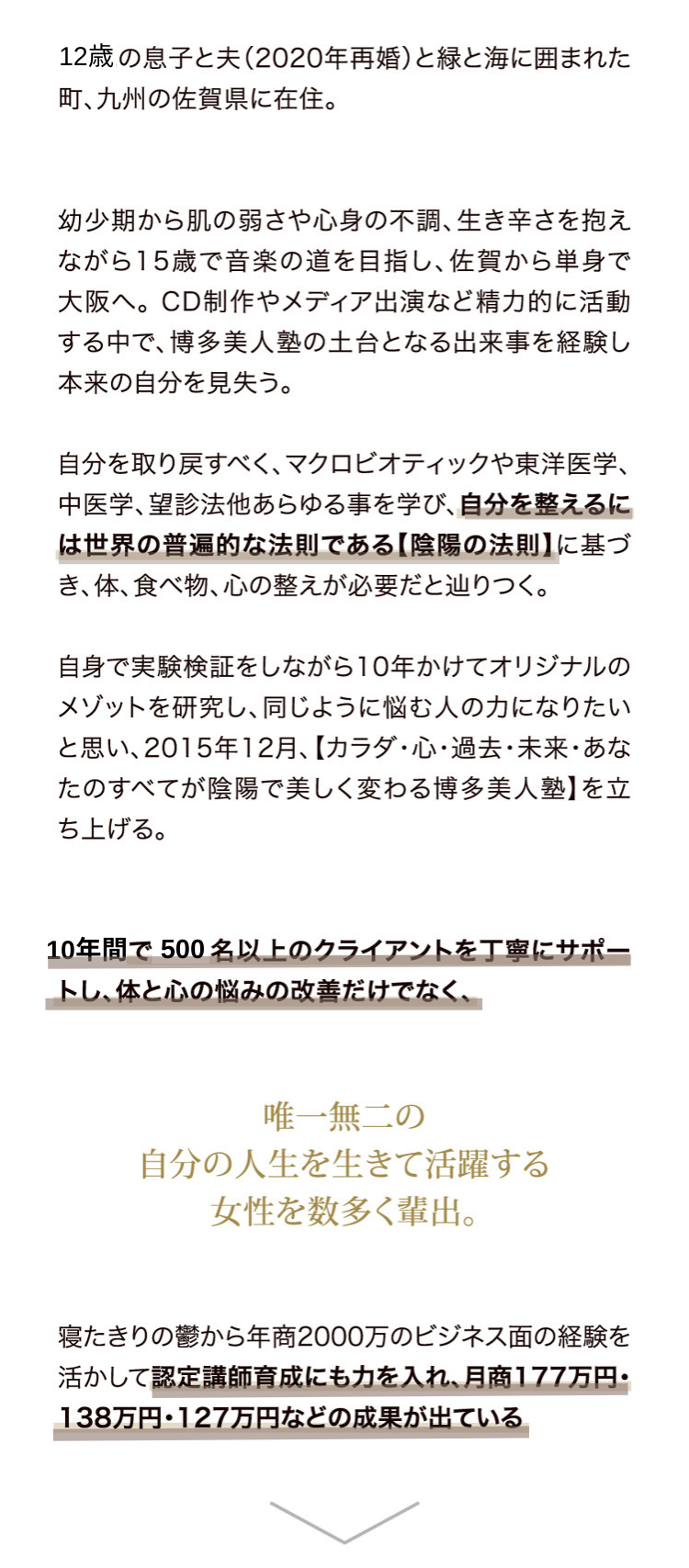 最初の質問から少し逸れましたが、博多美人塾は、本質的な、本物の深いマクロビオティックをベースにしていますが、世間一般的に認識されているマクロビではありません。博多美人塾という、唯一無二のカテゴリ、唯一無二の存在と捉えて頂けると幸いです。