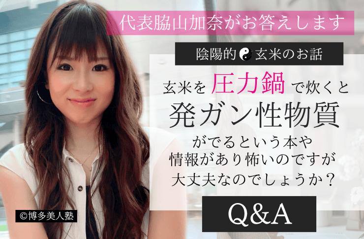 質問があります。玄米を圧力鍋で炊くと発ガン性物質がでるという本や情報があり、怖いのですが、大丈夫なのでしょうか?